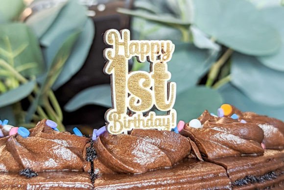 146.5x70mm wood engraved cake topper.